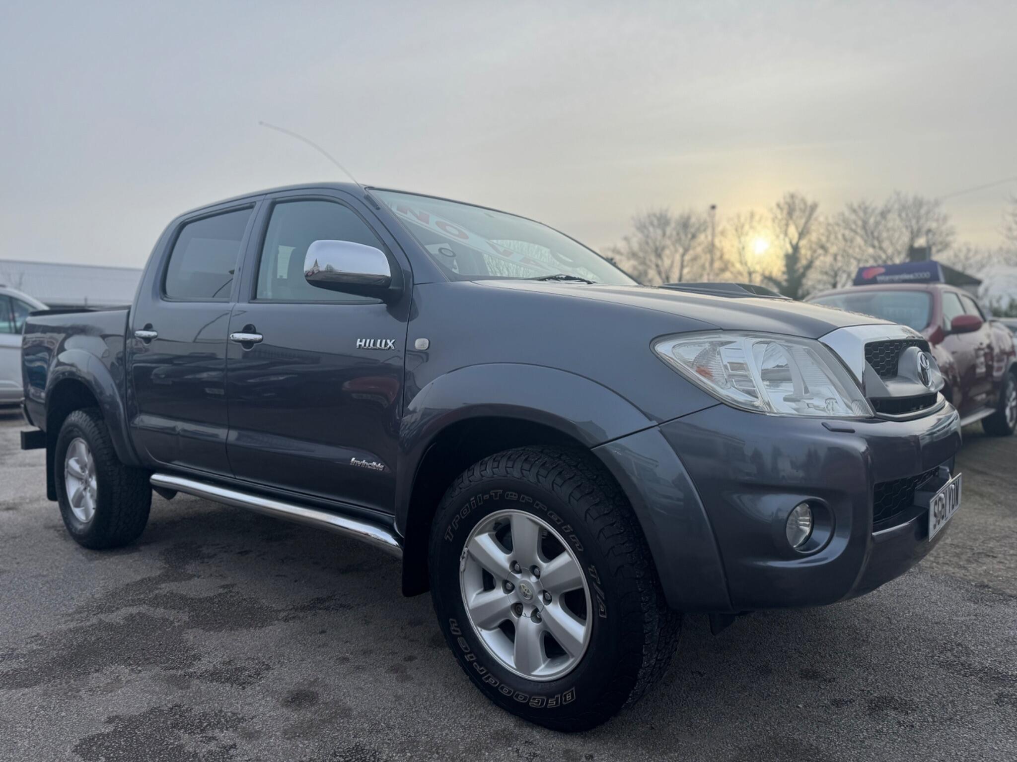 This 2011 Toyota Hilux Invincible 4x4 D-4D DCB presents a compelling proposition with its remarkably low mileage for its age, having covered just 96,000 miles. As a robust Invincible variant, this double cab pickup is equipped with a powerful 3.0L Diesel engine and Four Wheel Drive capability, ready for any challenge. Its provenance is further assured with a clear vehicle history check and a 3 month warranty for your peace of mind. Inside, you'll find comfort and convenience with Automatic Air Conditioning featuring climate control, and the ease of a Rear View Camera complete with parking assistance. The Dusk Sensor ensures your headlights activate automatically, while Bluetooth Connectivity keeps you connected on the go.